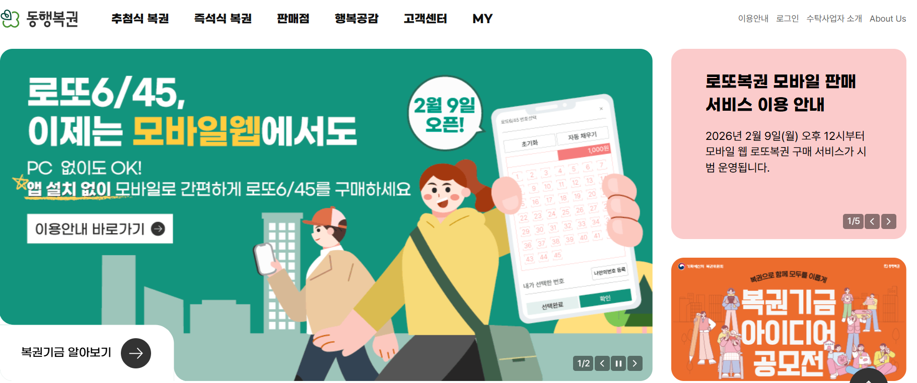 로또 6/45는 정부 허가 온라인 사이트에서만 구매 가능합니다.