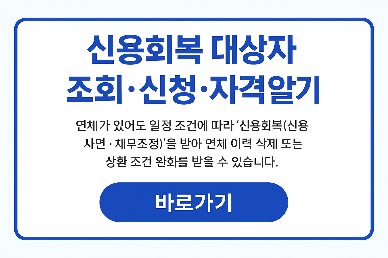 신용회복은 연체로 인해 금융 거래가 어려운 분들에게 채무조정, 이자 감면, 상환기간 연장 등의 도움을 주는 제도입니다. 지금 바로 자신의 대상 여부를 확인해보세요.