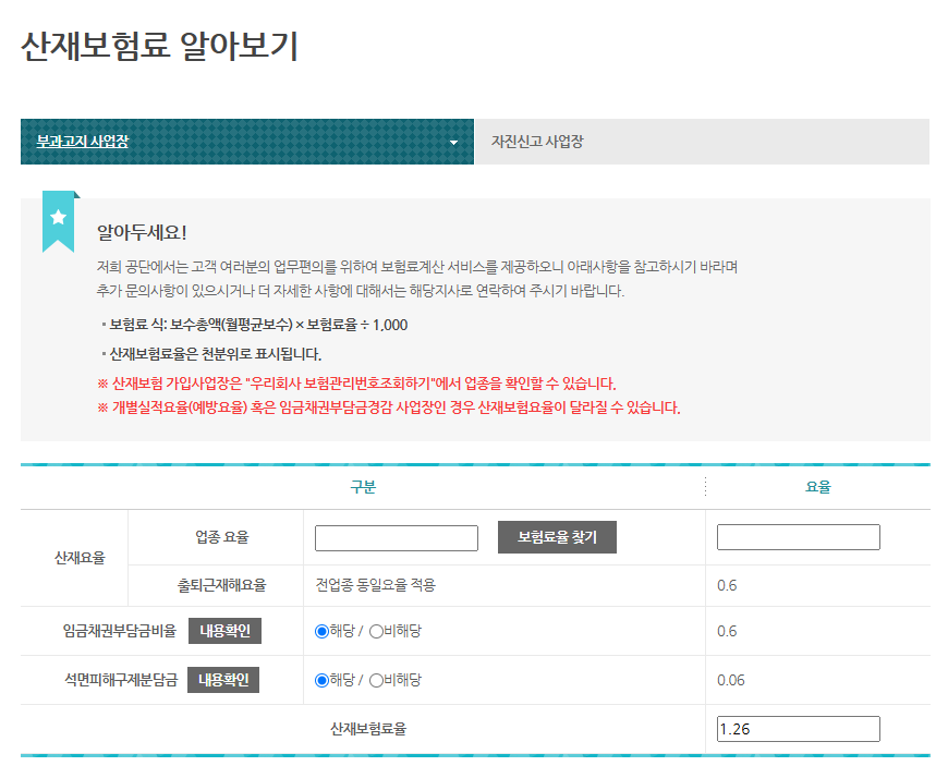 플랫폼 노동자라면 누구나 근로복지공단 홈페이지에서 제공하는 산재보험료 자동 계산기를 통해 자신의 보험료 부담액을 계산할 수 있습니다.